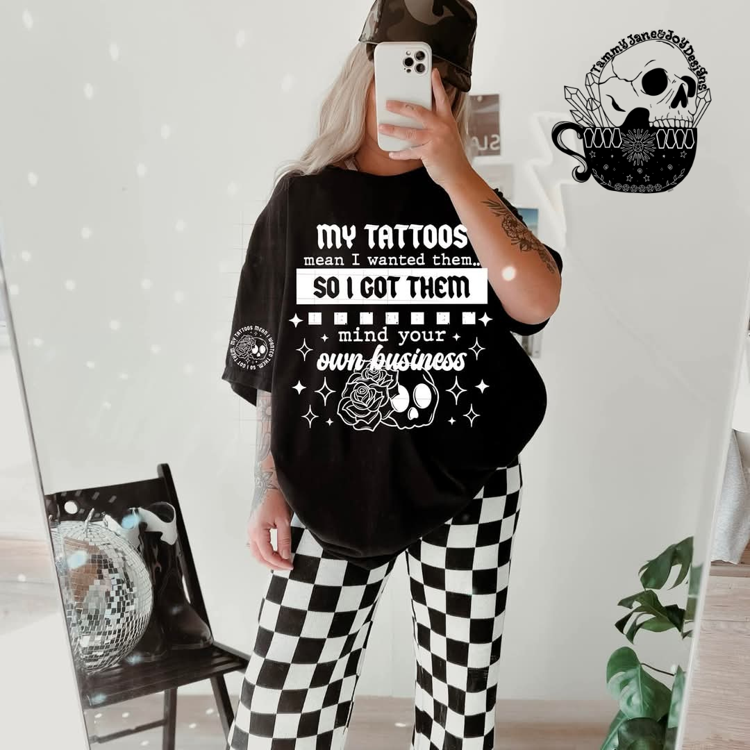 My tattoos mean I wanted them so I got them (white font)
